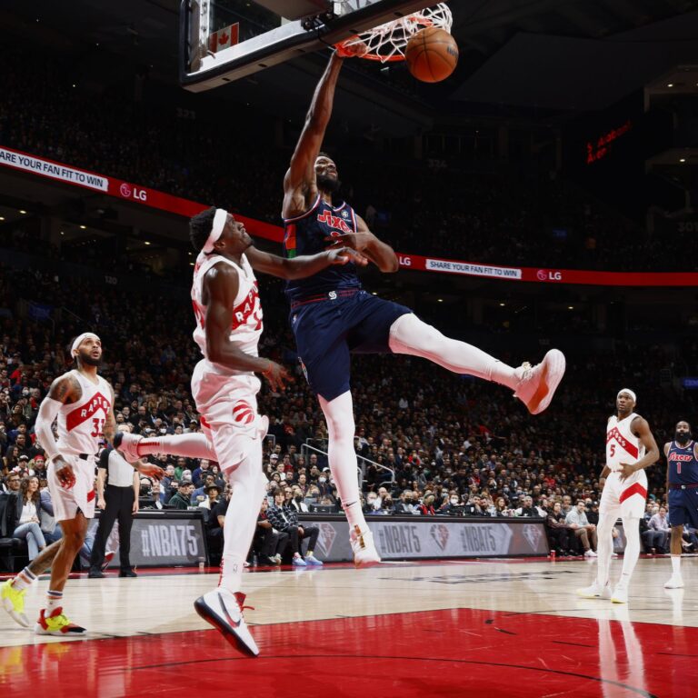 2021-22赛季NBA季后赛持续进行。费城76人客场迎来与多伦多猛龙的系列赛第3战。全场打完,费城104-101加时再胜猛龙,总比分3-0抢先,拿到赛点。 全场数据: 详细比分:19-29、27-27、28-19、21-20、加时9-6(76人在前)。 猛龙这边,阿奴诺比得到26分5篮板4助攻、西亚卡姆入账12分5篮板4助攻2抢断、范弗利特12