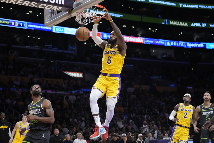 洛杉矶湖人队勒布朗詹姆斯击败明尼苏达森林狼队。