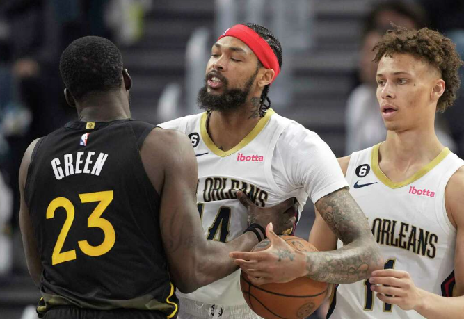 NBA 吉祥坊更新:金州勇士队的德雷蒙德格林防守新奥尔良鹈鹕队的乔纳斯瓦兰丘纳斯