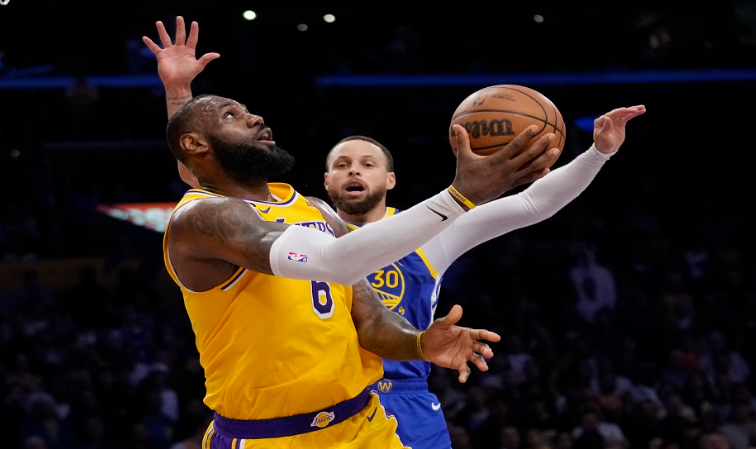 洛杉矶湖人队的勒布朗詹姆斯在 NBA 西部半决赛第六场对阵金州勇士队的比赛中得分。 周五,在美国加利福尼亚州洛杉矶的洛杉矶体育馆举行的 NBA 西部半决赛第六场比赛中,洛杉矶湖人队以 122-101 击败金州勇士队,以 4-2 系列赛领先。 西部地区。 湖人队用丹尼斯施罗德换下了贾里德范德比尔特。 这让